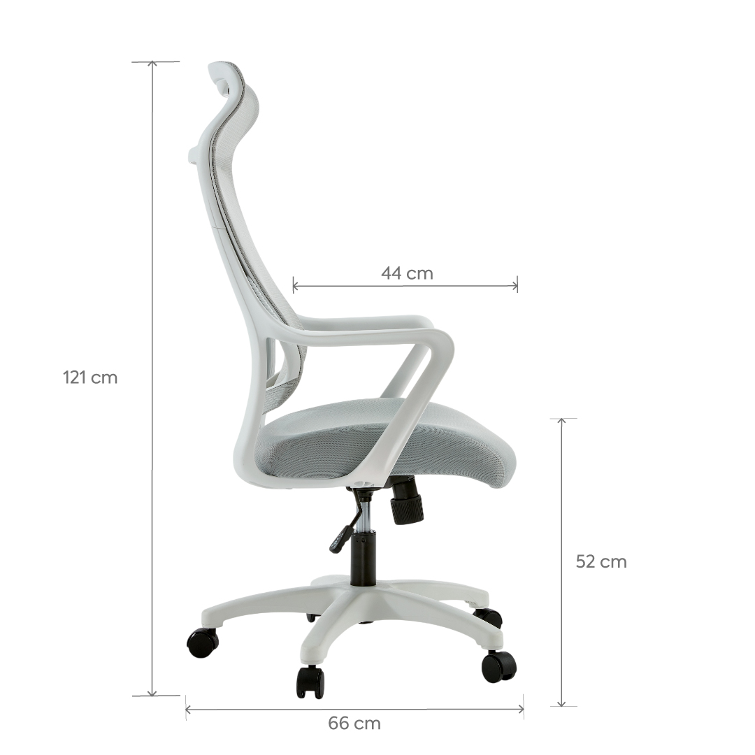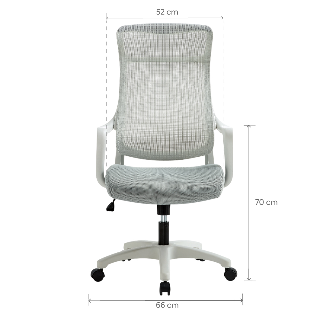 La Silla de Oficina Shibui gris claro está diseñada para acompañarte cómodamente durante toda tu jornada. Su respaldo de malla transpirable favorece la ventilación y aporta una sensación fresca y liviana, ideal para largas horas de trabajo o estudio. El asiento, cuidadosamente acolchado, ofrece un soporte equilibrado que mejora la postura y el confort diario.