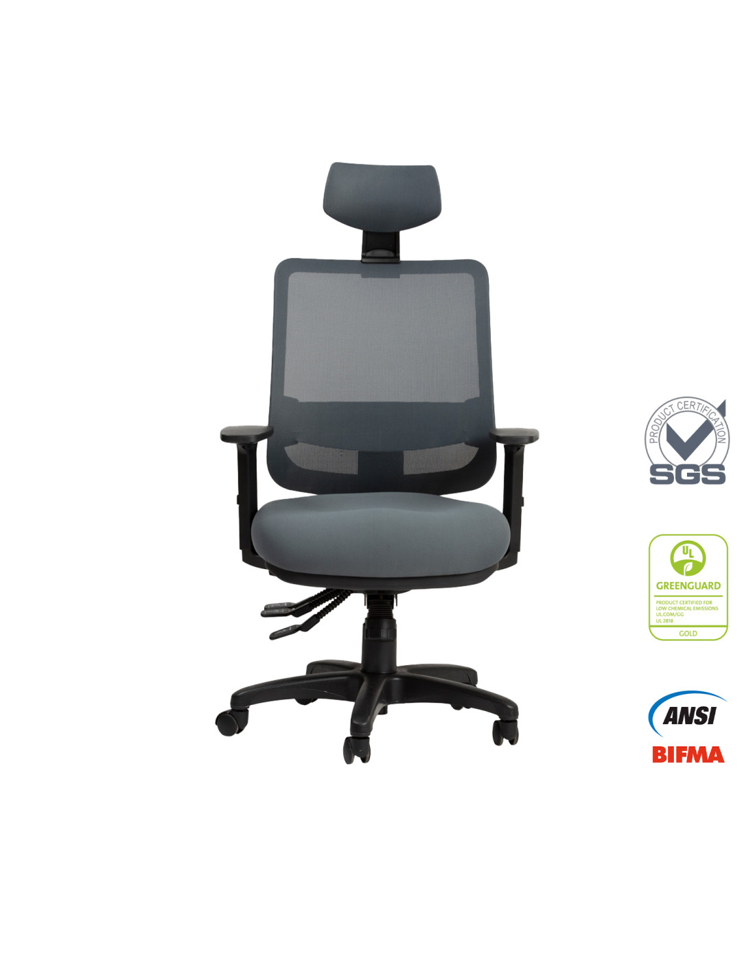 De diseño contemporáneo y respaldo alto, la Saga gris brinda confort y estilo profesional.