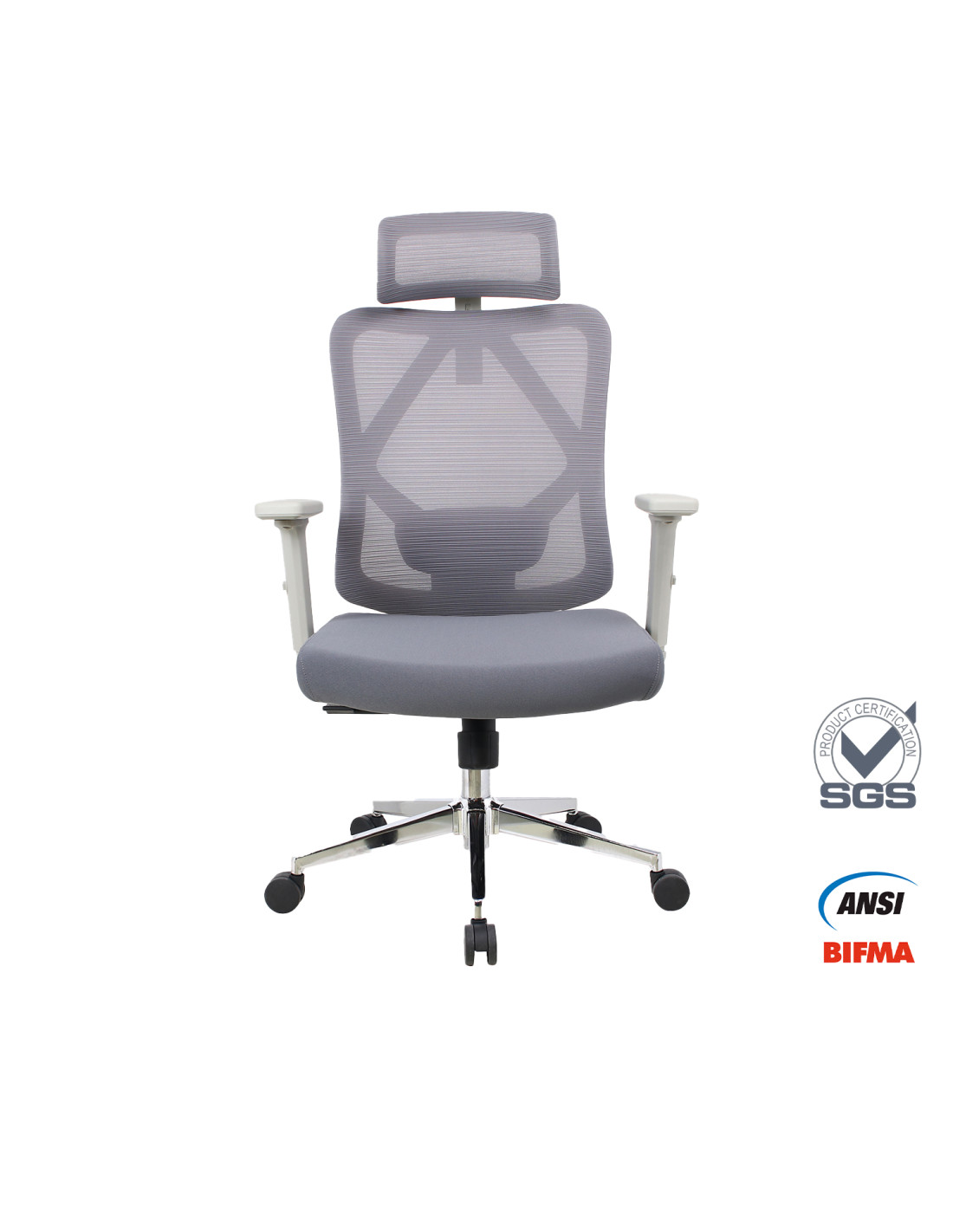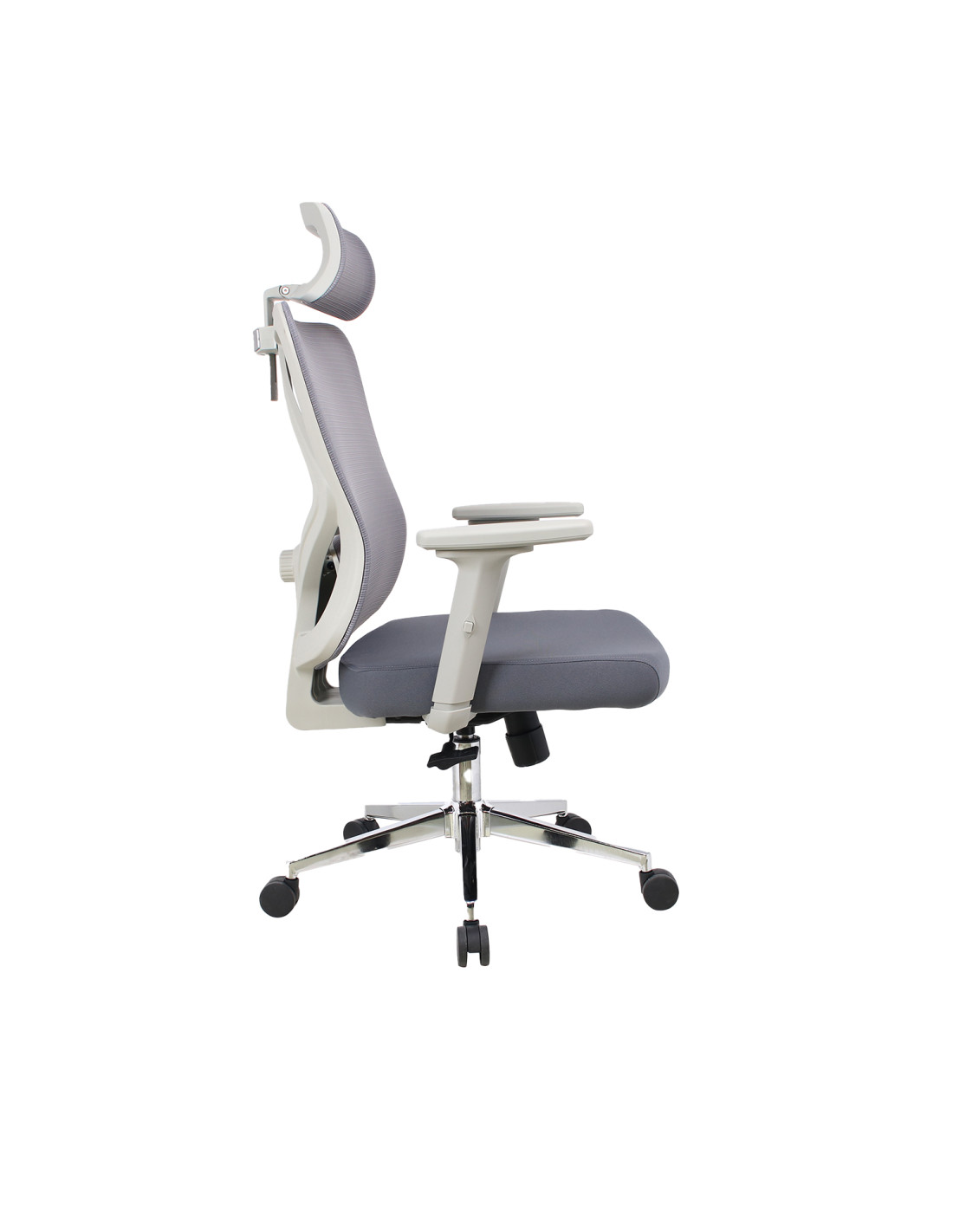 La silla de oficina Tacora cromada gris es la fusión perfecta de sofisticación y comodidad en tu espacio de trabajo. Con una estructura gris elegante, su reposacabezas de malla, respaldo de malla y asiento de tela brindan un soporte fresco y ergonómico. Los reposabrazos 3D y el soporte de madera 3D aseguran una adaptación precisa a tus movimientos, mientras el mecanismo multifuncional de elevación, inclinación y bloqueo en 3 posiciones te permite personalizar cada momento. Su base de cromo pulido de 320 mm, junto con ruedas de nylon de 60 mm, proporciona estabilidad y fluidez en cada desplazamiento.