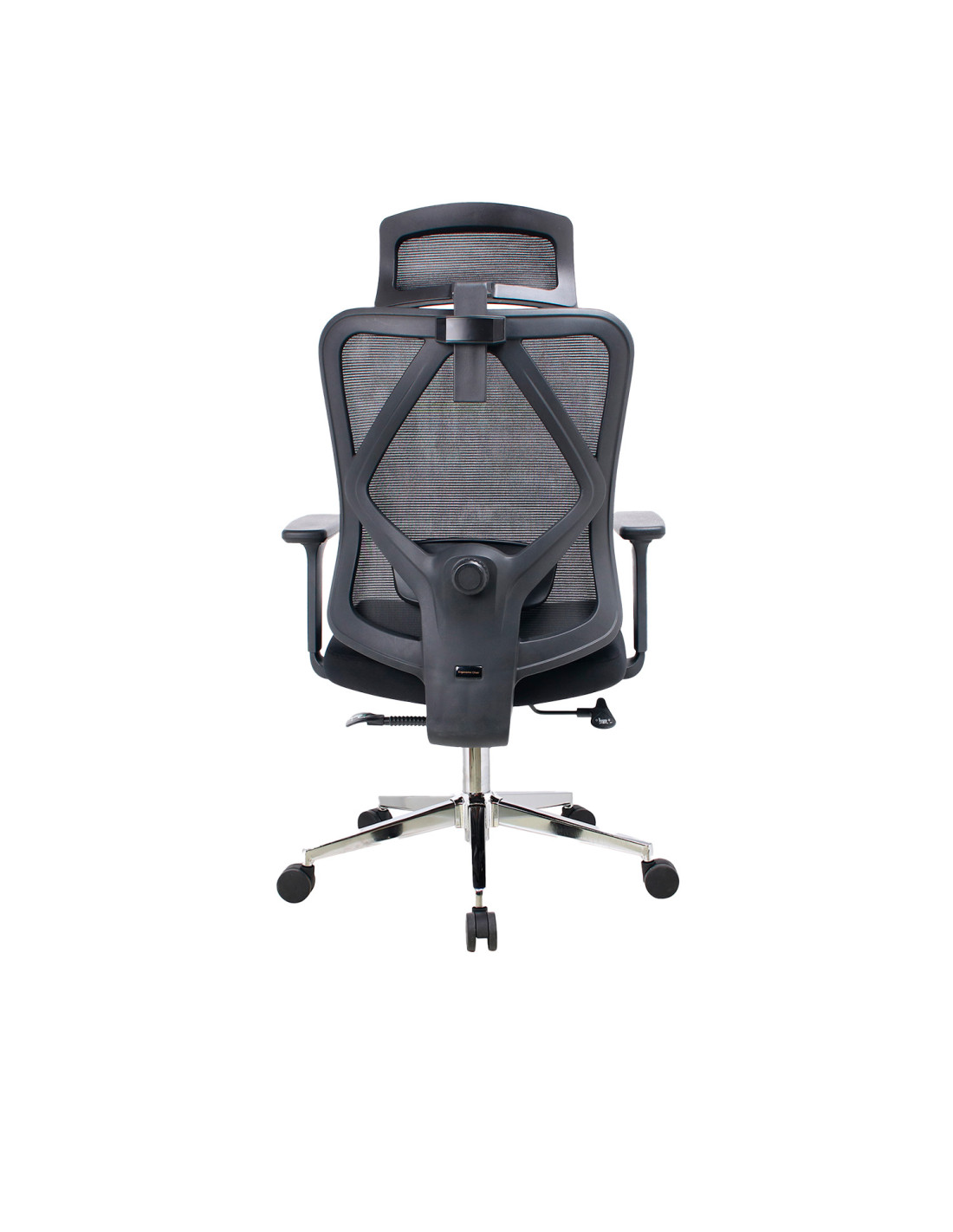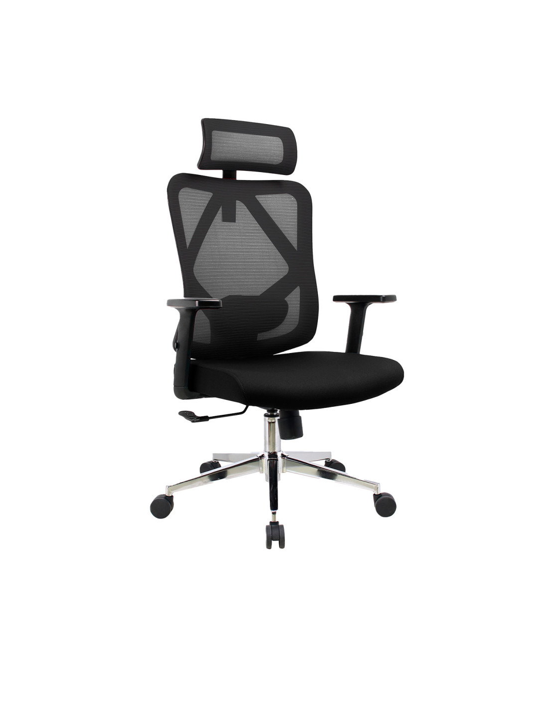 La silla de oficina Tacora combina elegancia y funcionalidad para transformar cualquier espacio en un entorno de trabajo ideal. Su estructura negra se complementa perfectamente con un reposacabezas de malla, respaldo de malla y asiento de tela, brindando una ventilación óptima y un soporte cómodo. Los reposabrazos 3D y el soporte de madera 3D te ofrecen un ajuste personalizado, mientras que el mecanismo multifuncional permite una elevación, inclinación y bloqueo en 3 posiciones para lograr una posición personalizada. La base de cromo pulido de 320 mm y las ruedas de nylon de 60 mm aseguran un movimiento suave y una estabilidad impecable.