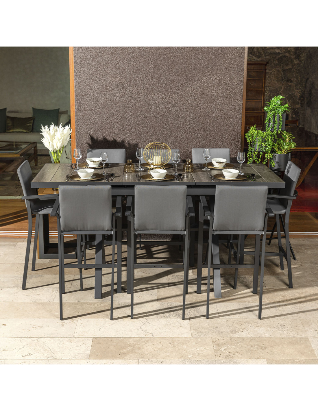 Silla bar Lucca gris, diseño resistente y cómodo que eleva el estilo de tu terraza.