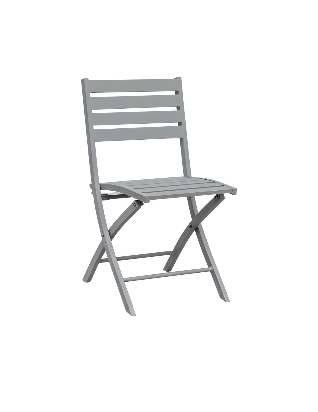 Silla de terraza plegable gris, moderna, cómoda y resistente, ideal para exteriores elegantes.
