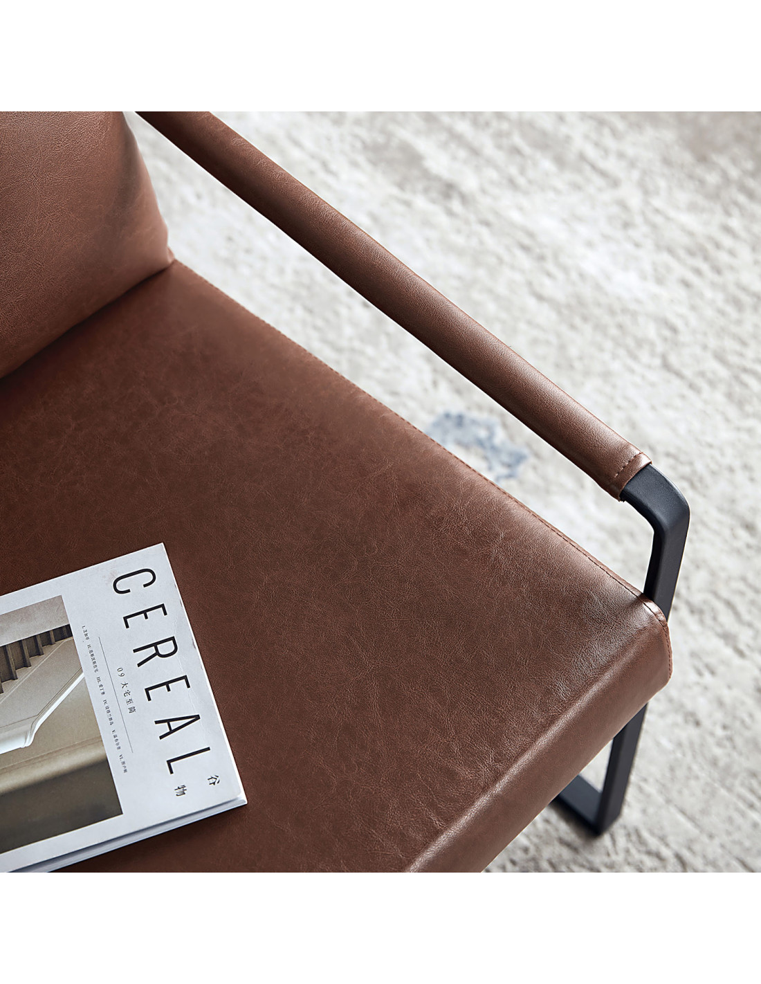 El Sitial Café Noa es el toque de elegancia que tu espacio merece, combinando la calidez del cuero con un diseño moderno y funcional. Este sitial de 1 cuerpo tapizado con cuero presenta un atractivo acabado café que invita a relajarse en un asiento cómodo y envolvente. Su estructura metálica aporta un toque contemporáneo, haciendo de este sitial una pieza versátil que se adapta a cualquier ambiente, desde el living hasta un rincón de lectura. Con el Sitial de cuero Noa, cada momento de descanso se convierte en un lujo cotidiano, reflejando tu buen gusto y amor por el diseño sofisticado.