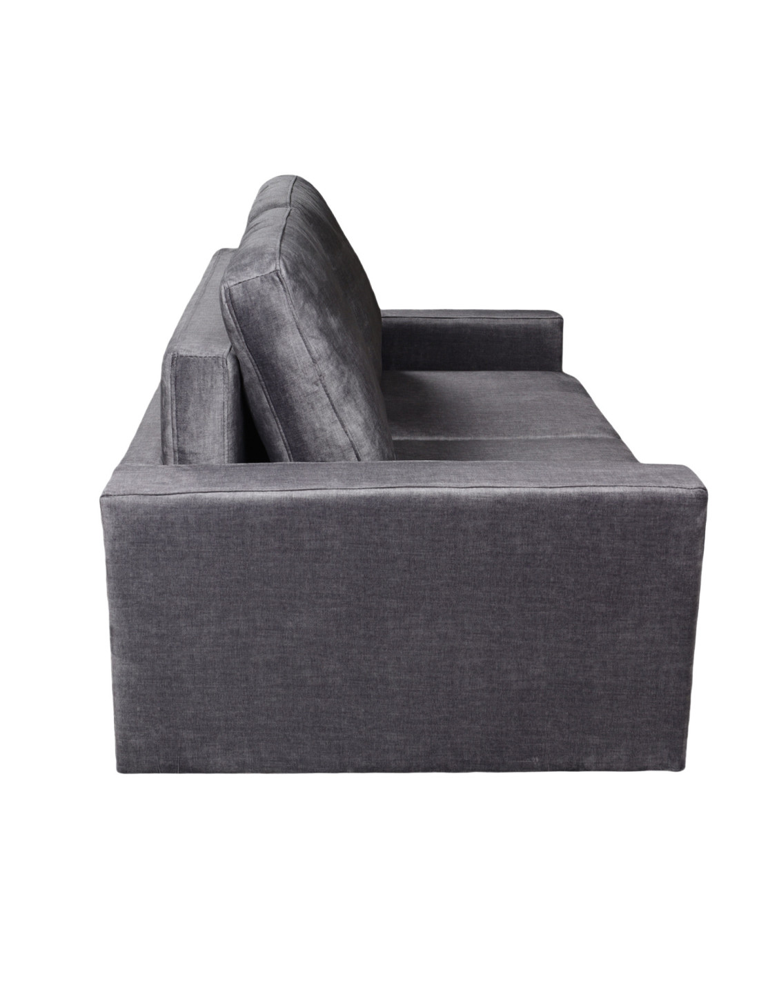 Sofá cama tapizado en poliéster, con estructura de madera de eucalipto y patas de madera. Incorpora resortes pocket y espuma de alta densidad para mayor confort y soporte.