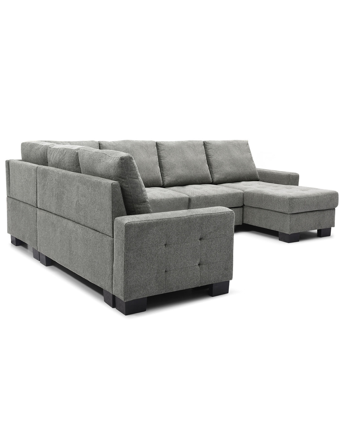Sofá cama seccional Vilna gris oscuro, estructura de madera de eucalipto con resortes pocket y espuma densidad 20 kg/m³. Amplio, cómodo y funcional para el living.