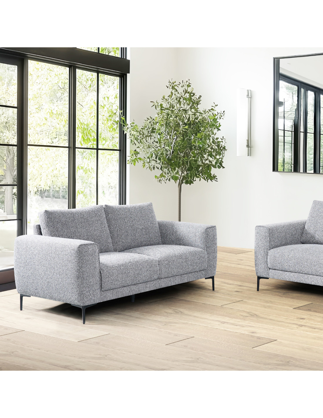 El Sofá Matteo Gris ofrece líneas modernas y confort envolvente, ideal para un ambiente sereno y elegante.