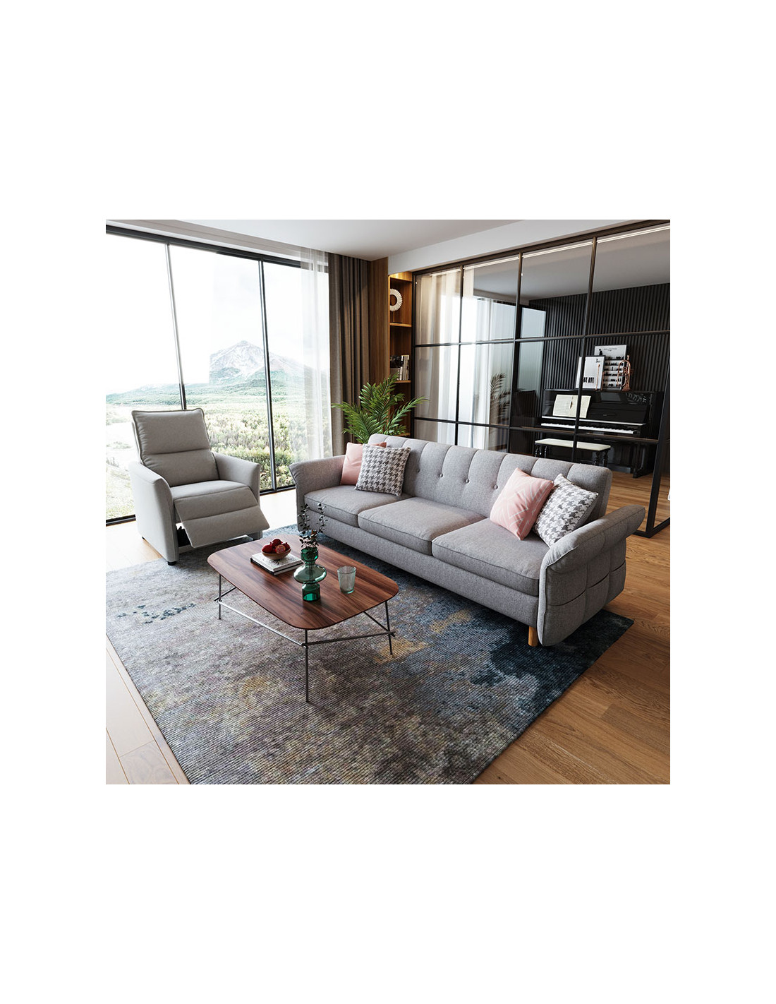 El Sofá Gala Gris ofrece estilo moderno y confort atemporal, ideal para acompañar tus espacios con armonía.