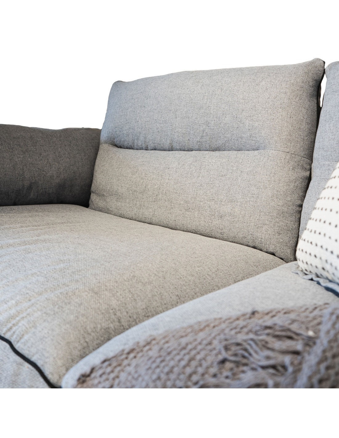 Su asiento profundo de 60 cm y su sistema de confort, que combina látex y espumas de alto rebote, entregan una sensación envolvente y cómoda desde el primer uso. El respaldo segmentado se adapta ergonómicamente a la zona lumbar y al cuello, favoreciendo una postura natural y relajada.