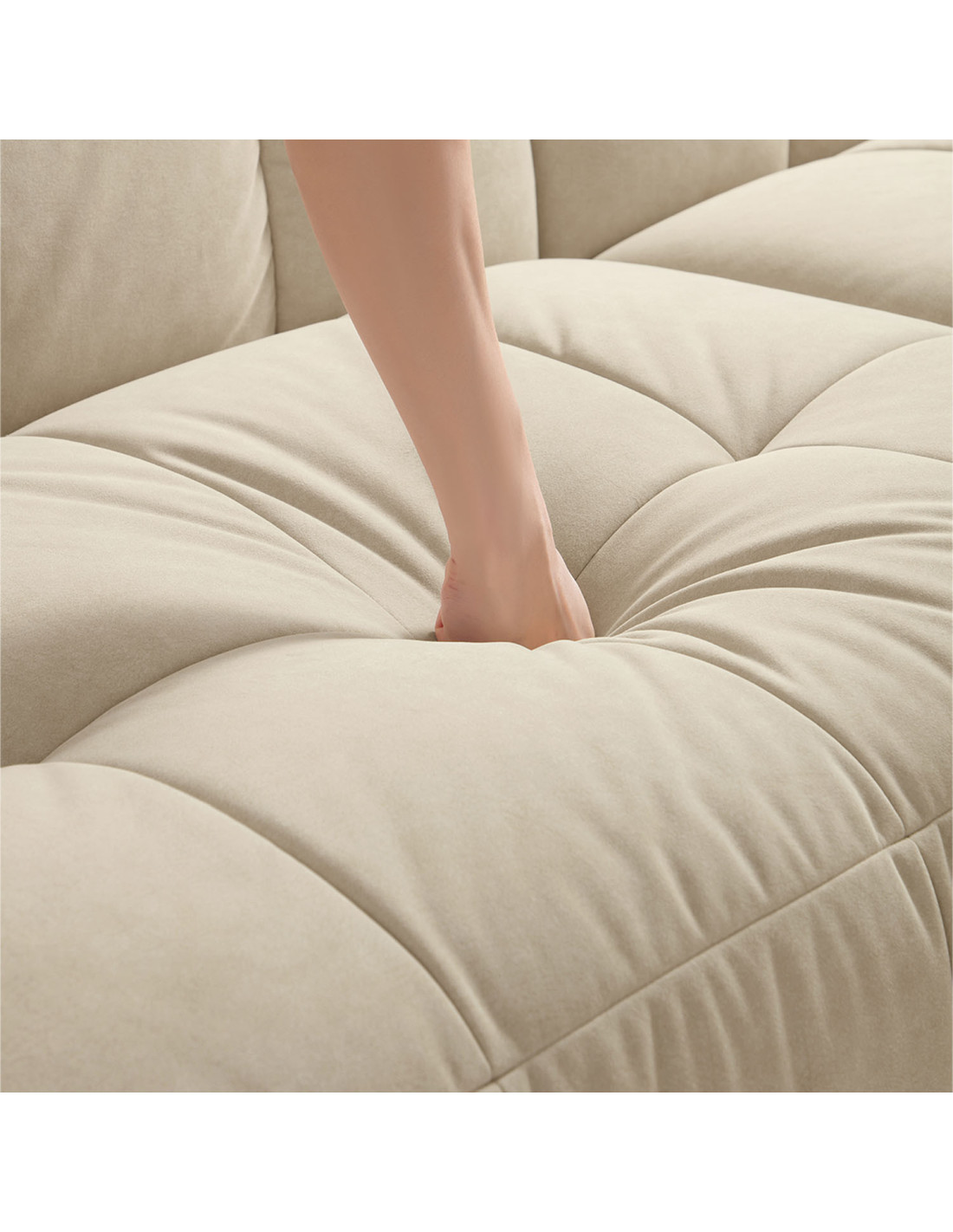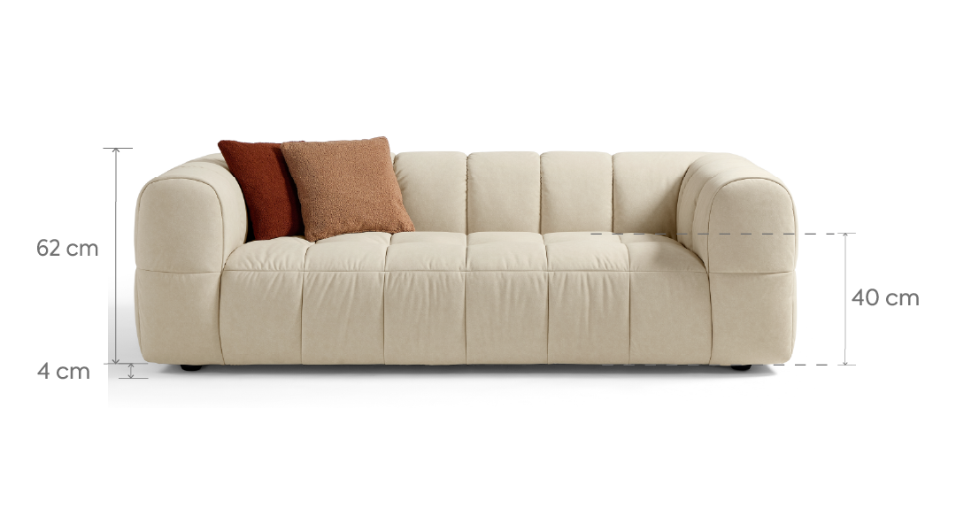 El asiento y respaldo combinan rellenos mullidos que entregan una sensación de suavidad envolvente, ideal para relajarse, compartir en familia o disfrutar momentos de pausa sin prisas. Su estructura sólida brinda estabilidad y durabilidad, manteniendo una estética limpia y contemporánea. El tono beige aporta luminosidad y armonía al espacio, integrándose con naturalidad a distintos estilos decorativos. Nagomi es más que un sofá: es una invitación diaria a disfrutar del confort con elegancia y serenidad.