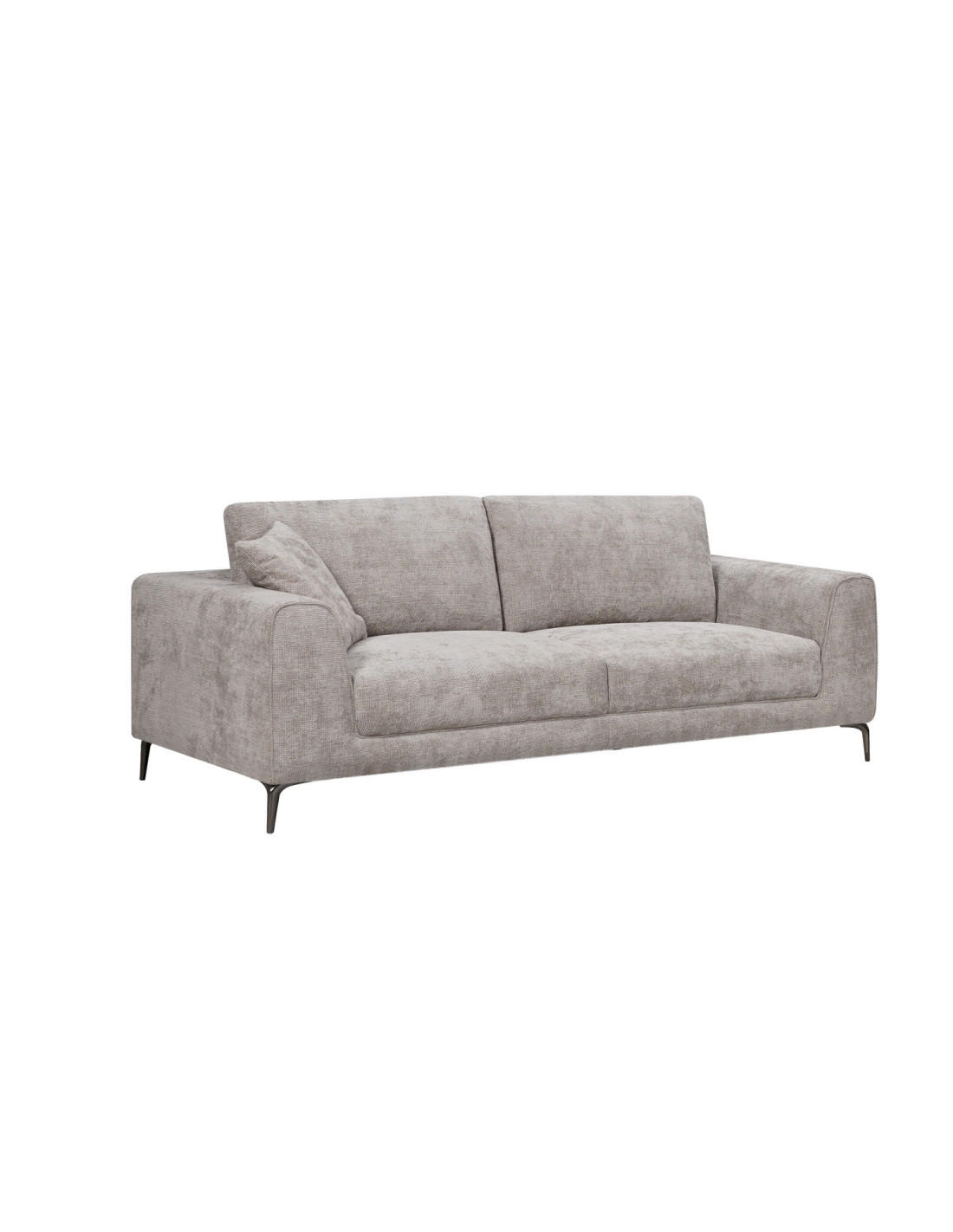 Con diseño moderno y tapiz suave, el Sofá Bliss Gris aporta equilibrio y elegancia al hogar.