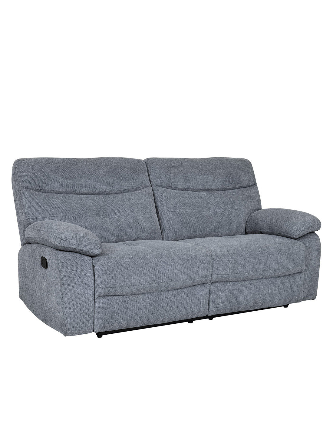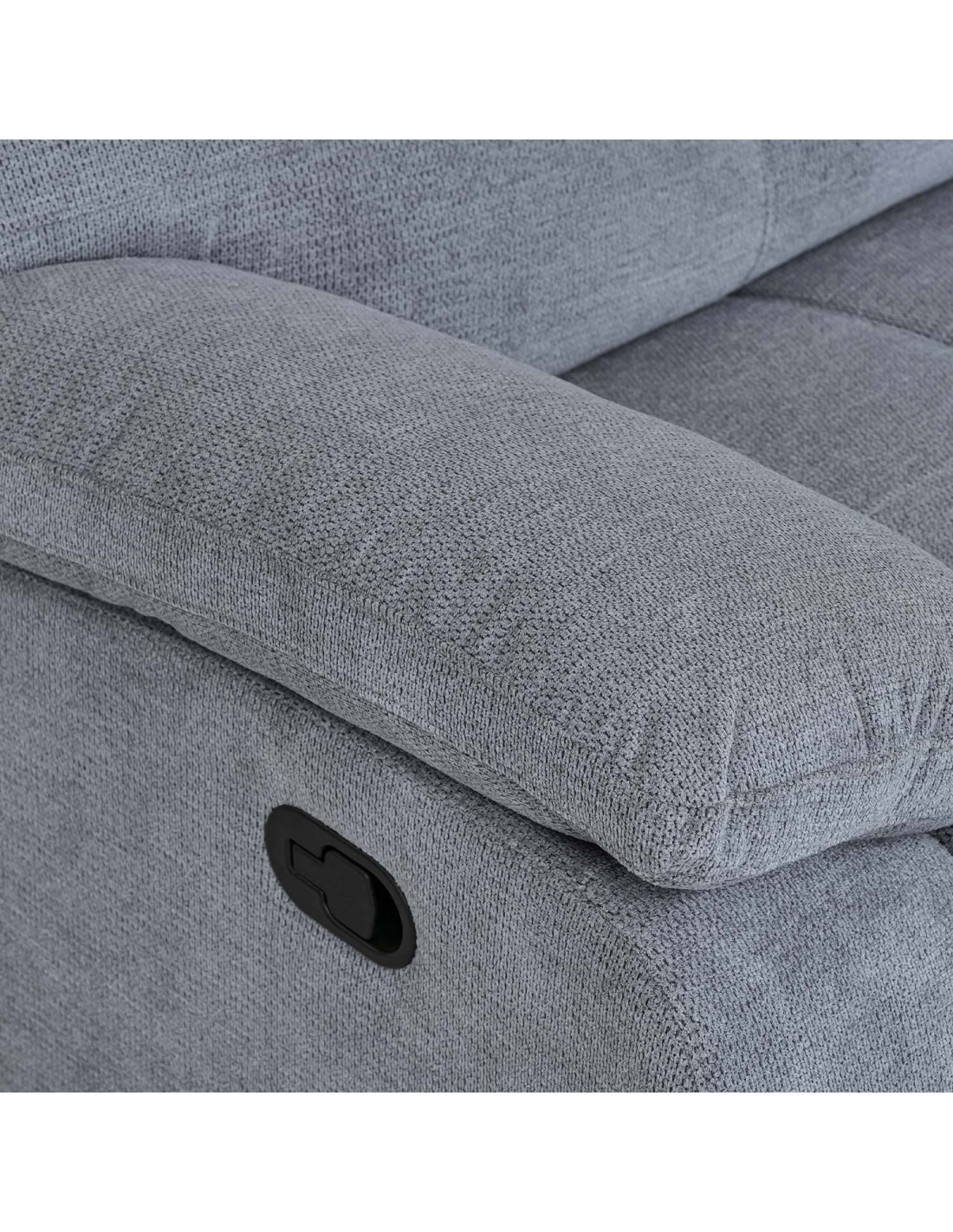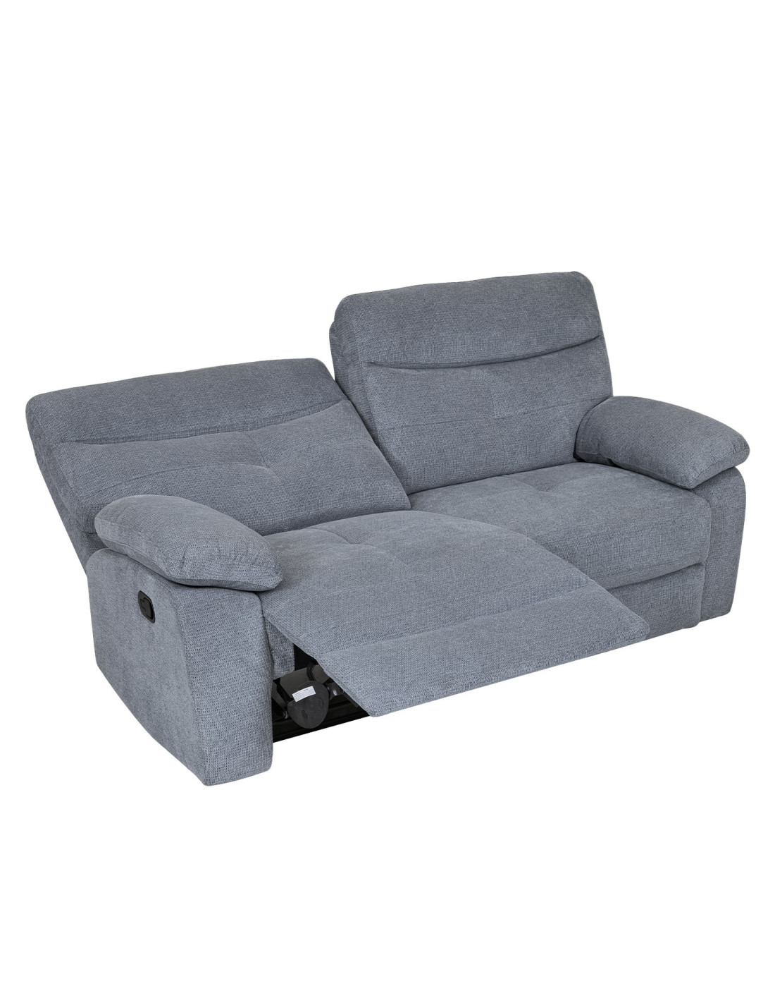 Sofá reclinable 3 cuerpos con reclinación manual, tapiz de tela y estructura de madera de pino. Incorpora resortes pocket y asiento de espuma de alta densidad para mayor confort y soporte.