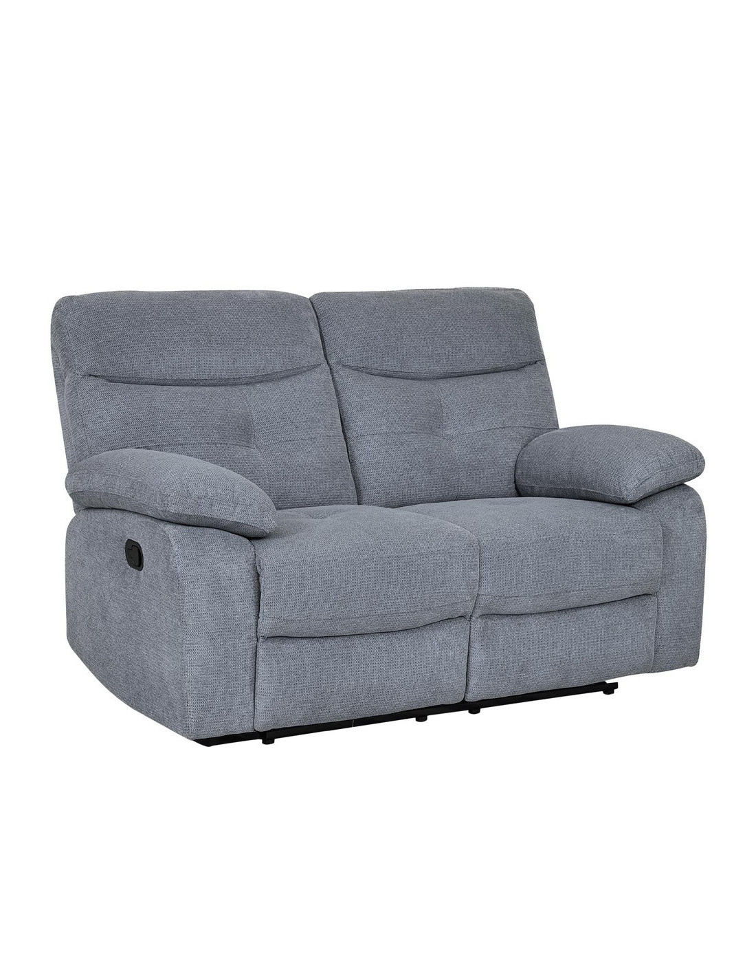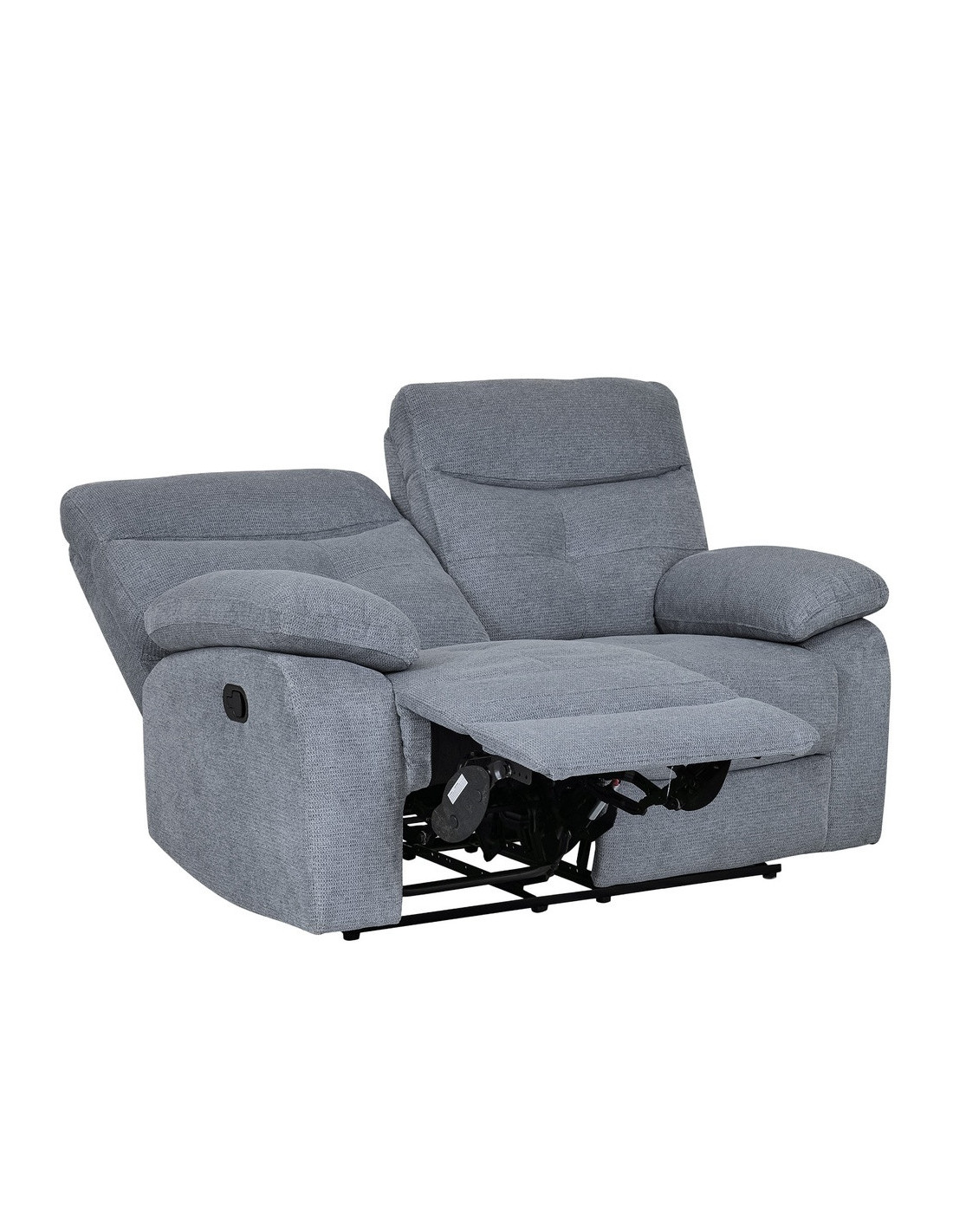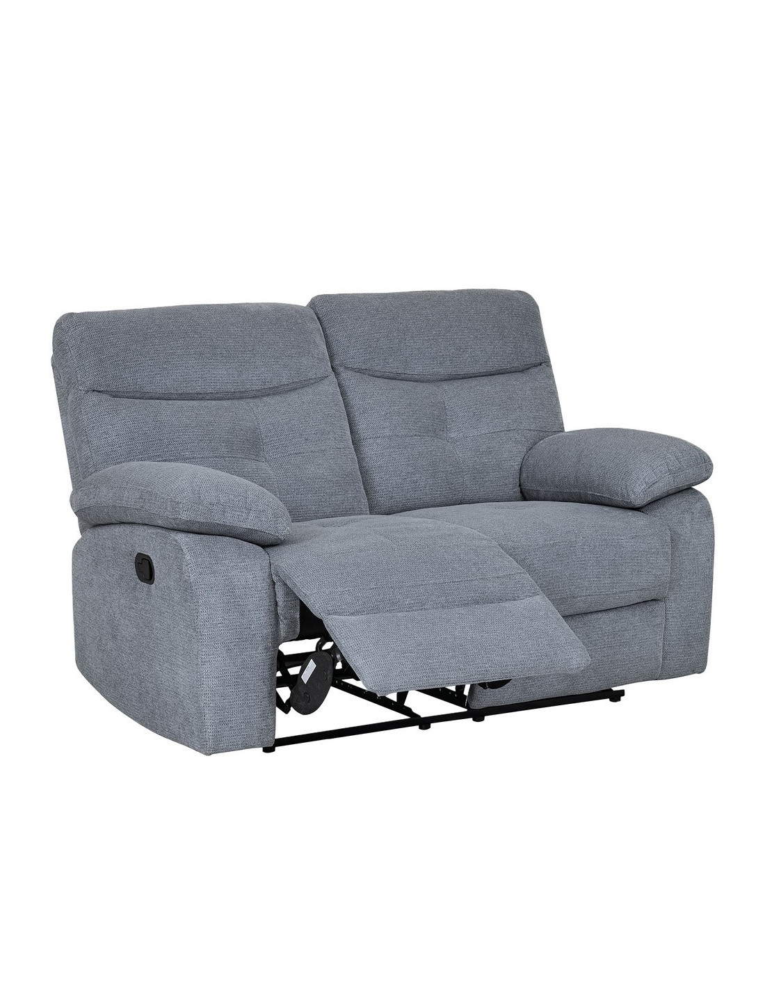 Sofá reclinable 2 cuerpos con reclinación manual, tapiz de poliéster y estructura de madera reforzada. Incluye resortes pocket spring y asiento de espuma de alta densidad para mayor confort y soporte.