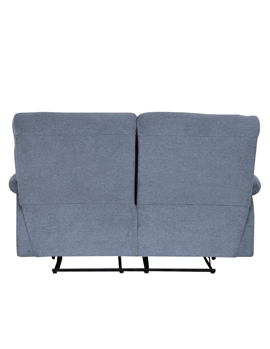 Sofá reclinable 2 cuerpos con reclinación manual, tapiz de poliéster y estructura de madera reforzada. Incorpora resortes pocket y asiento de espuma de alta densidad para mayor confort y soporte.