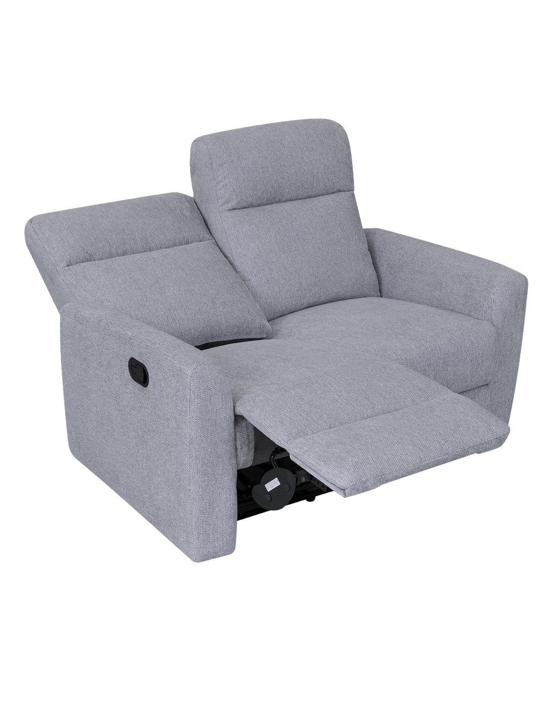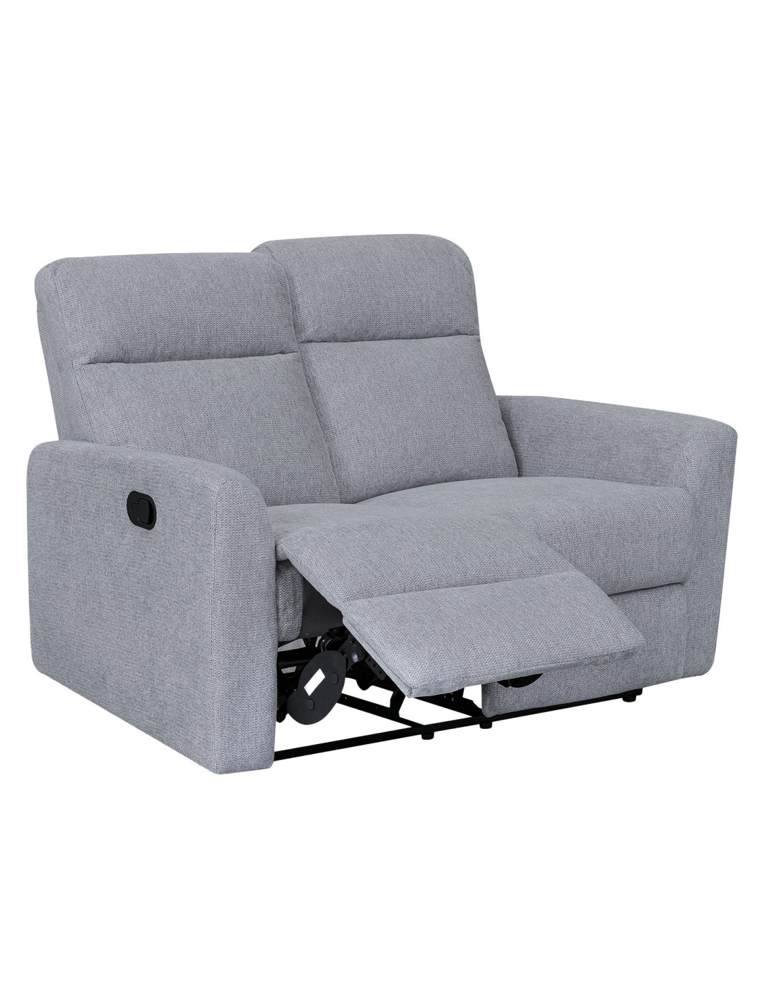 Sofá reclinable 2 cuerpos con reclinación manual, tapiz de tela y estructura de madera reforzada. Asiento con espuma reciclada y espuma de alta densidad para mayor confort y soporte.