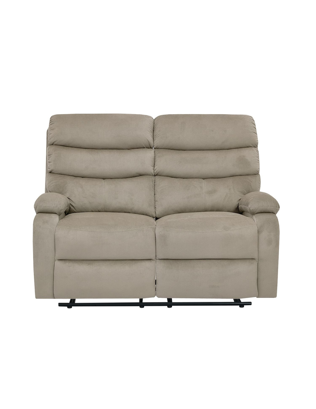Sofá reclinable 2 cuerpos tapizado en tela suave, con estructura de hierro y tablero laminado. Incorpora resortes pocket + zig-zag y relleno de espuma 28D para mayor confort y soporte.