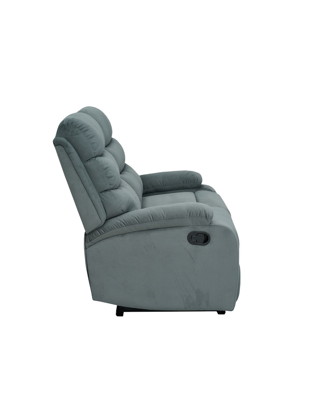 Sofá reclinable 2 cuerpos tapizado en tela suave, con estructura de hierro y tablero laminado. Incorpora resortes pocket + zig-zag y relleno de espuma 28D para mayor confort y soporte.