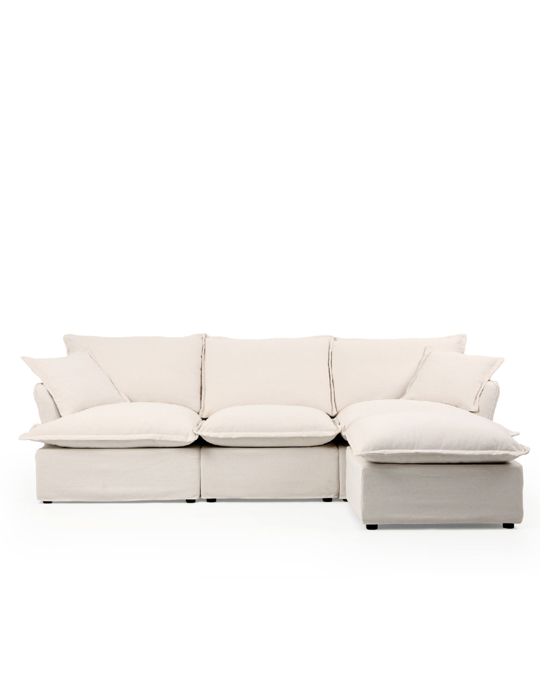 El Sofá Matteo Blanco une diseño moderno y amplitud, ideal para crear un ambiente sereno y sofisticado.