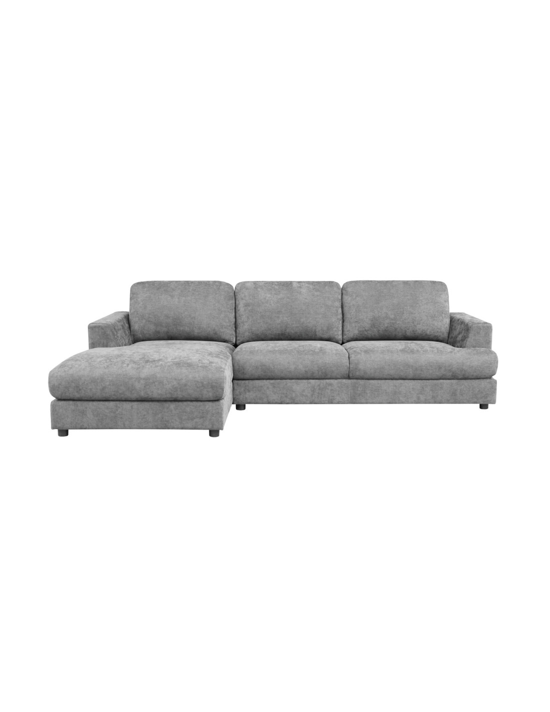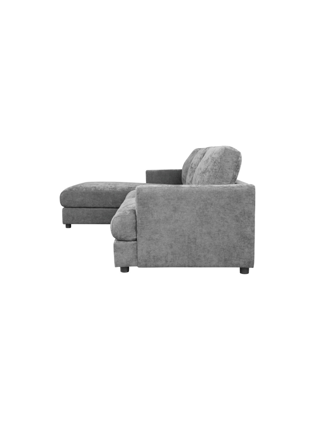 El Sofá Saona Gris Izquierdo ofrece elegancia moderna y textura suave, ideal para un living contemporáneo.