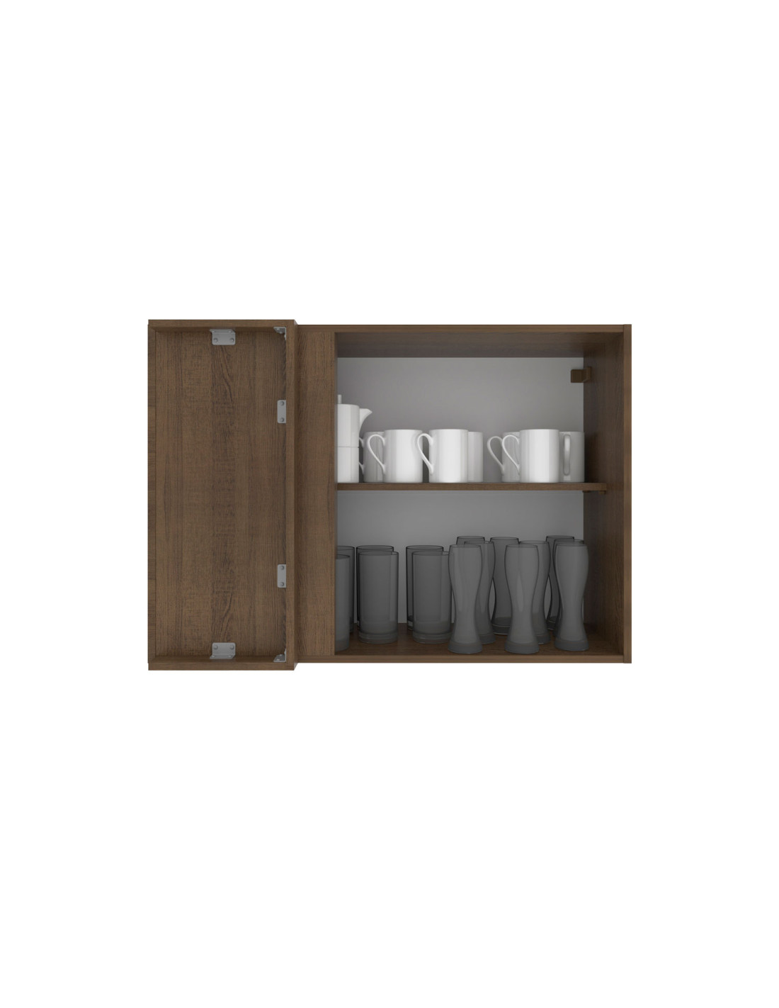 El aéreo esquinero Stella café de 94 cm es la solución perfecta para optimizar el espacio de tu cocina con estilo. Su diseño innovador, con una puerta convencional y una manilla delgada de aluminio, se abre suavemente gracias a sus bisagras metálicas con amortiguación. El interior, con un estante espacioso, te permite organizar desde utensilios hasta alimentos, manteniendo todo a mano. Con un acabado en patrón de madera rústica y el interior blanco, este mueble se adapta a cualquier entorno, ya que su montaje es flexible, pudiendo instalarse tanto en el lado derecho como izquierdo. Además, su pintura Poliéster ecológica de siete capas garantiza durabilidad. La línea Stella es completamente modular, permitiéndote crear la cocina perfecta.