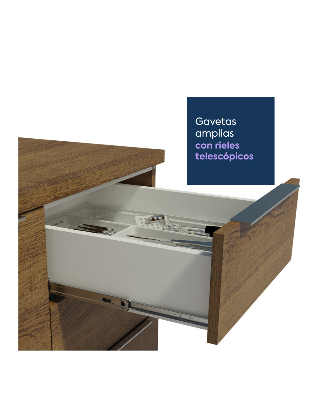 Moderna y versátil, esta base en tono café ofrece espacio y calidez. Ideal para ambientes con estilo contemporáneo.