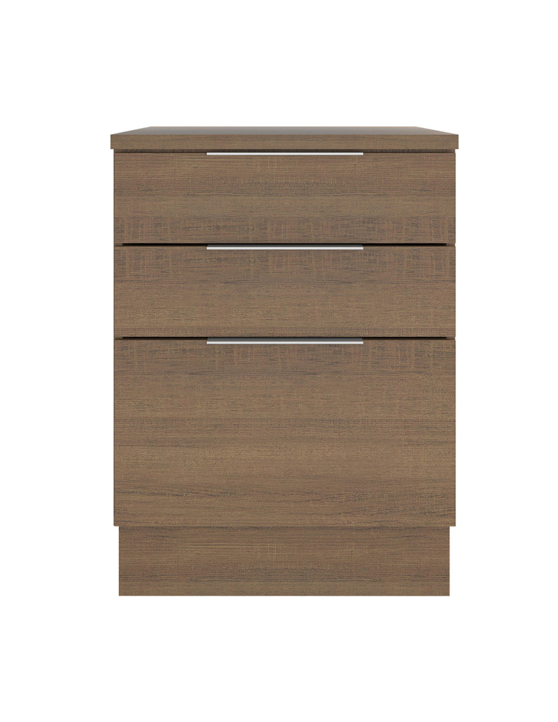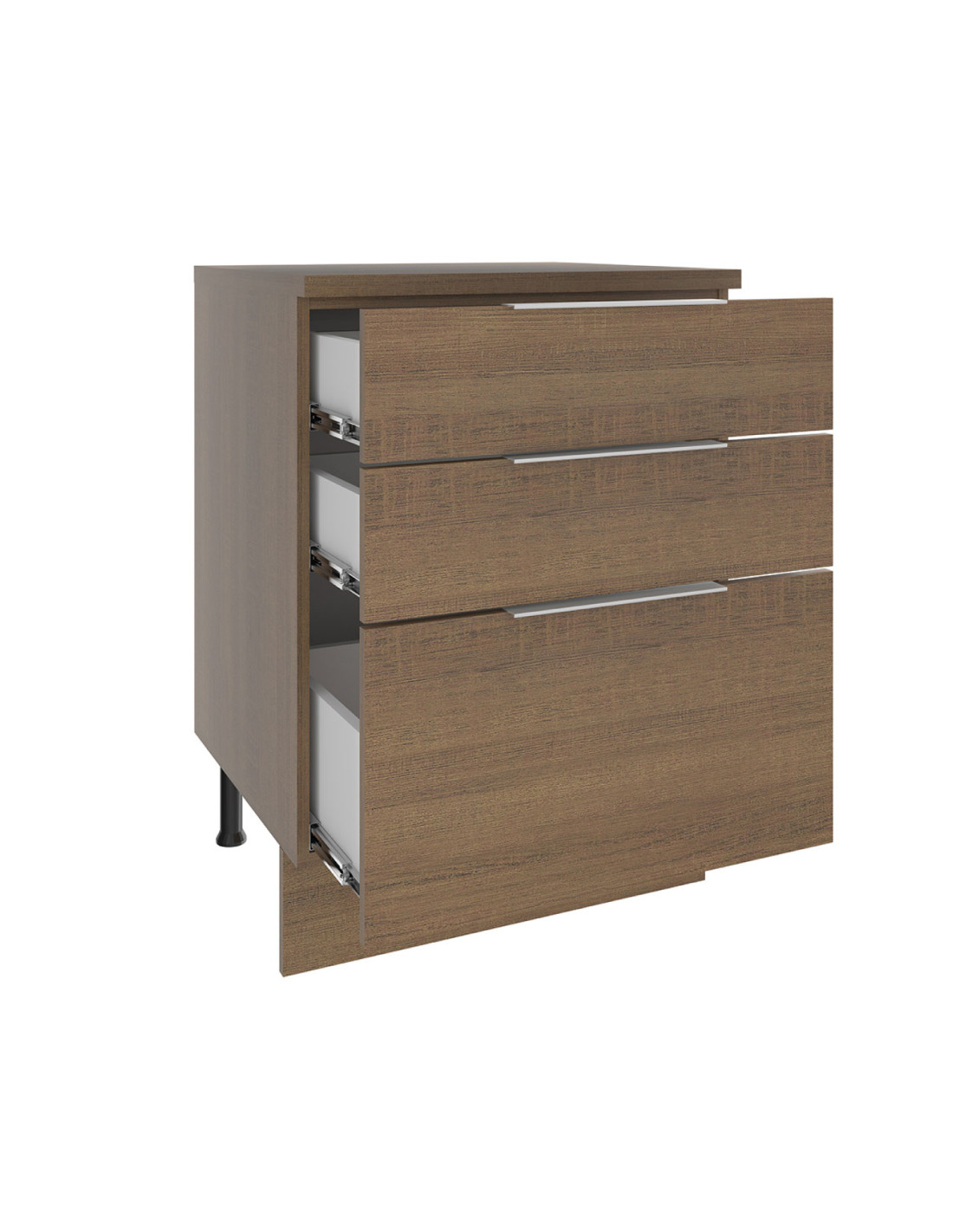 Moderna y práctica, esta base de tres cajones ofrece organización y estética natural. El acabado café realza la calidez del entorno.