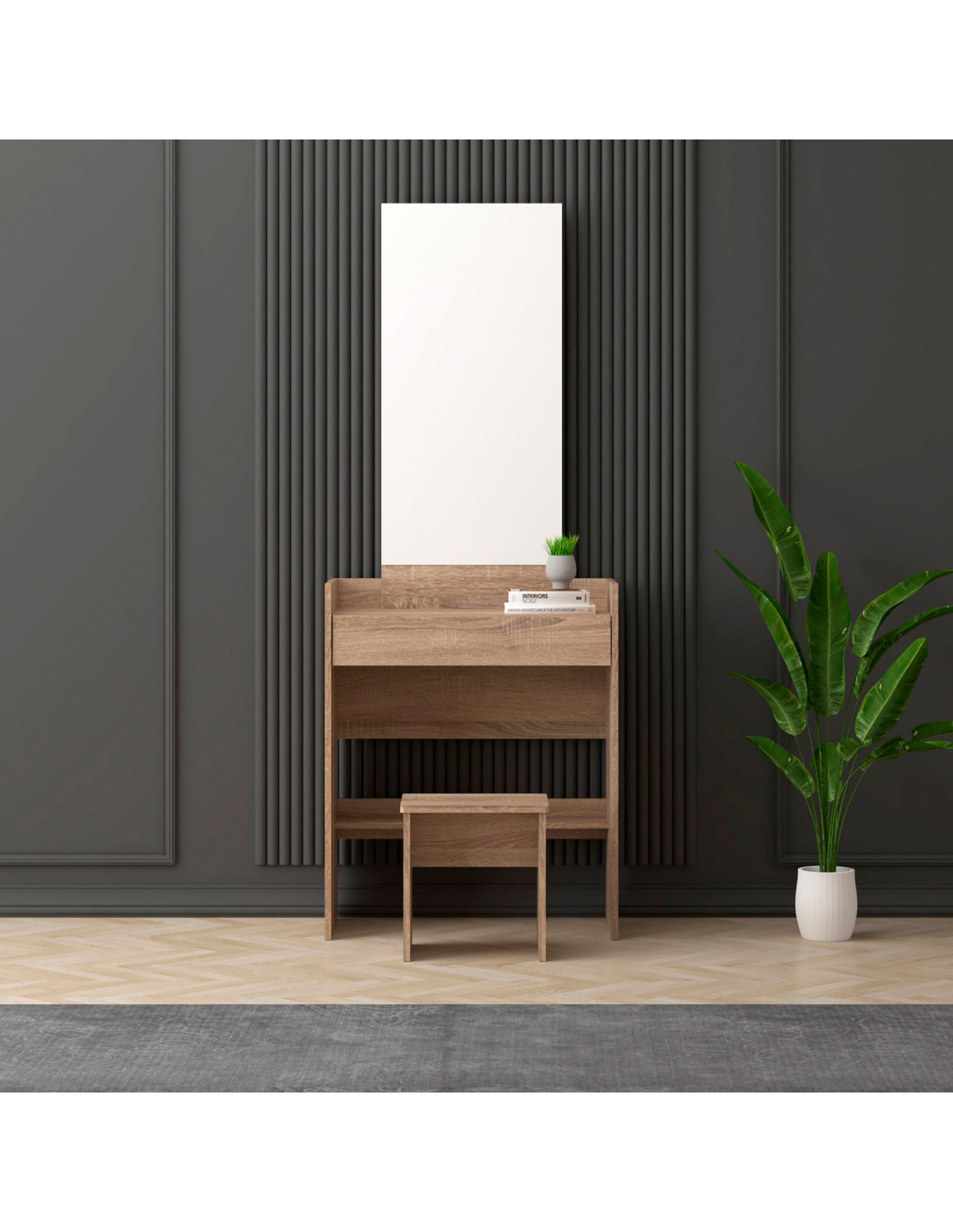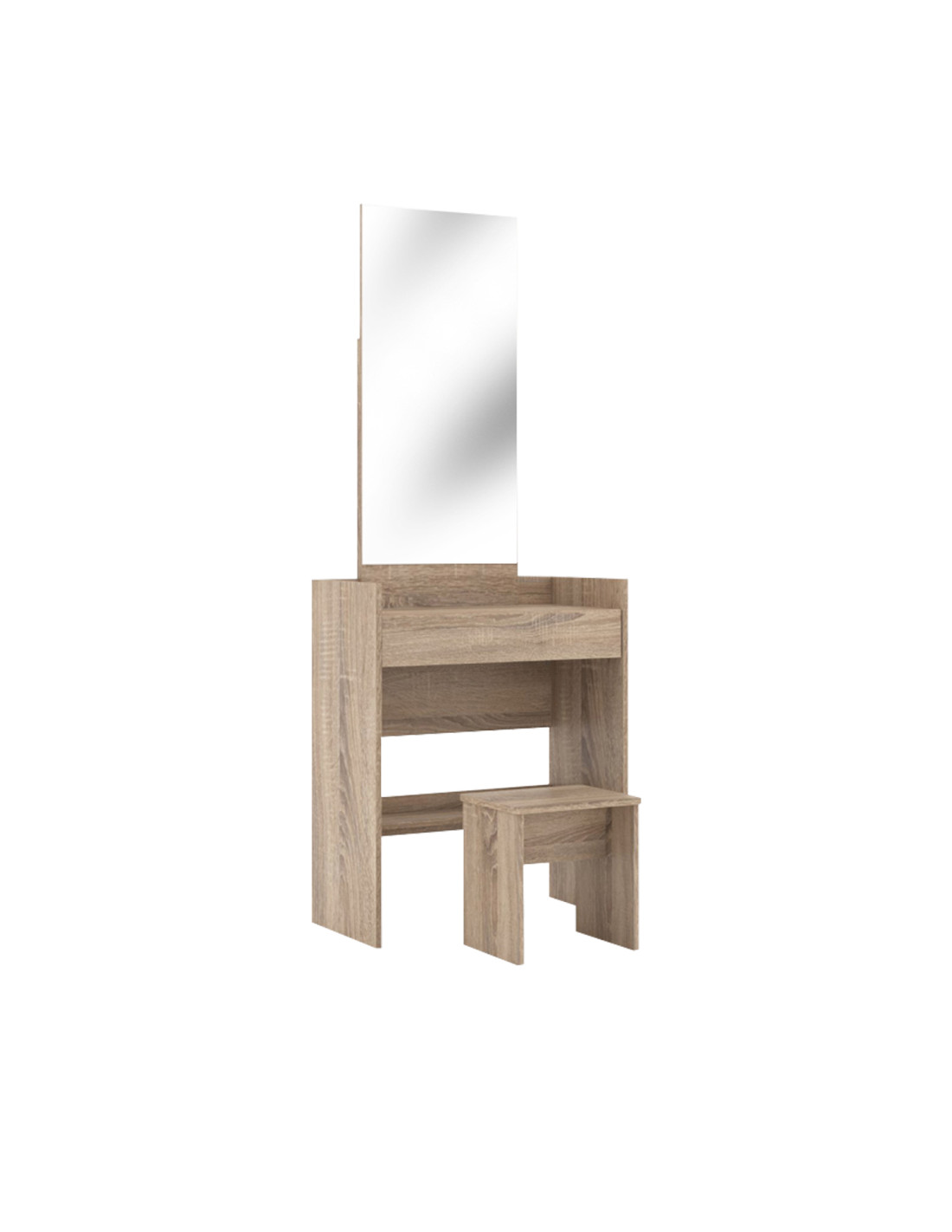El tocador Boegel café claro es mucho más que un mueble, es un espacio personal donde el estilo y la funcionalidad se unen para crear momentos únicos. Su diseño moderno, con un elegante espejo integrado, aporta luminosidad y amplitud a cualquier habitación. El práctico cajón ofrece un lugar perfecto para organizar tus esenciales de belleza o joyería, manteniendo el orden sin sacrificar elegancia. Este tocador con espejo y cajón es la pieza ideal para quienes buscan un rincón sofisticado donde la comodidad y el buen gusto se encuentran en perfecta armonía.