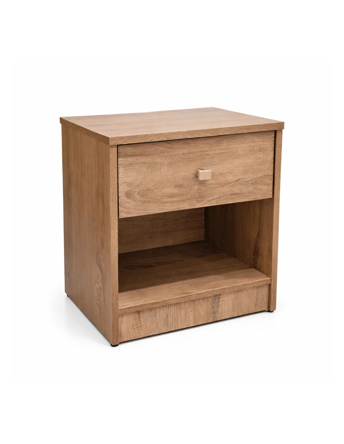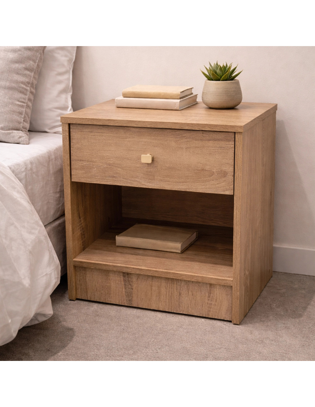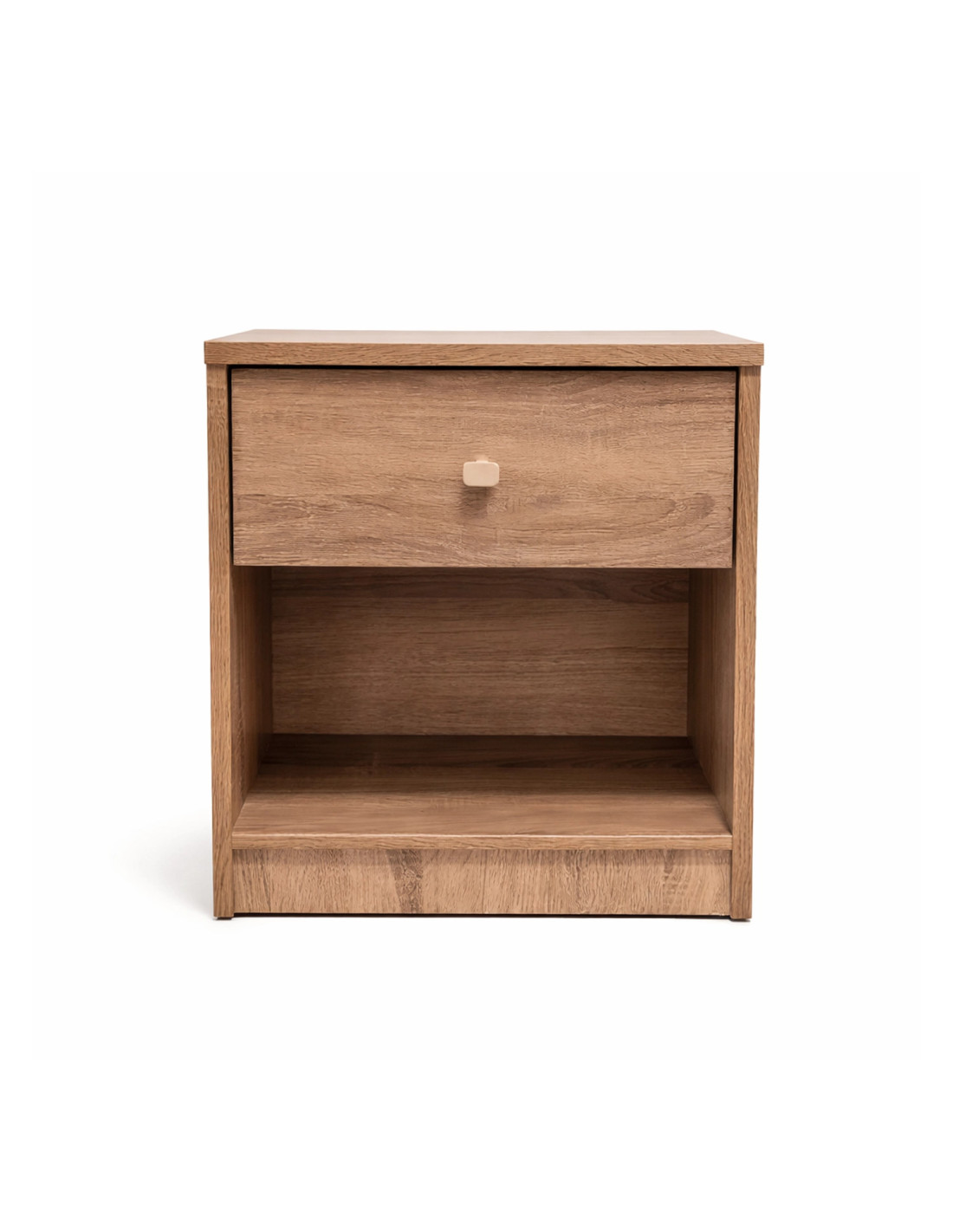 El velador Boegel café claro es la combinación perfecta de elegancia y funcionalidad que complementa tu espacio con estilo. Su diseño compacto y contemporáneo, con un práctico cajón, ofrece una solución ideal para mantener tus objetos personales al alcance de la mano, sin sacrificar la estética de tu dormitorio. Este velador de un cajón aporta un toque de calidez y orden a tu ambiente, siendo el compañero perfecto para quienes buscan un equilibrio entre diseño moderno y practicidad, creando un espacio acogedor y sofisticado.