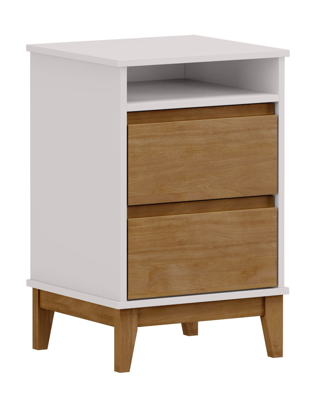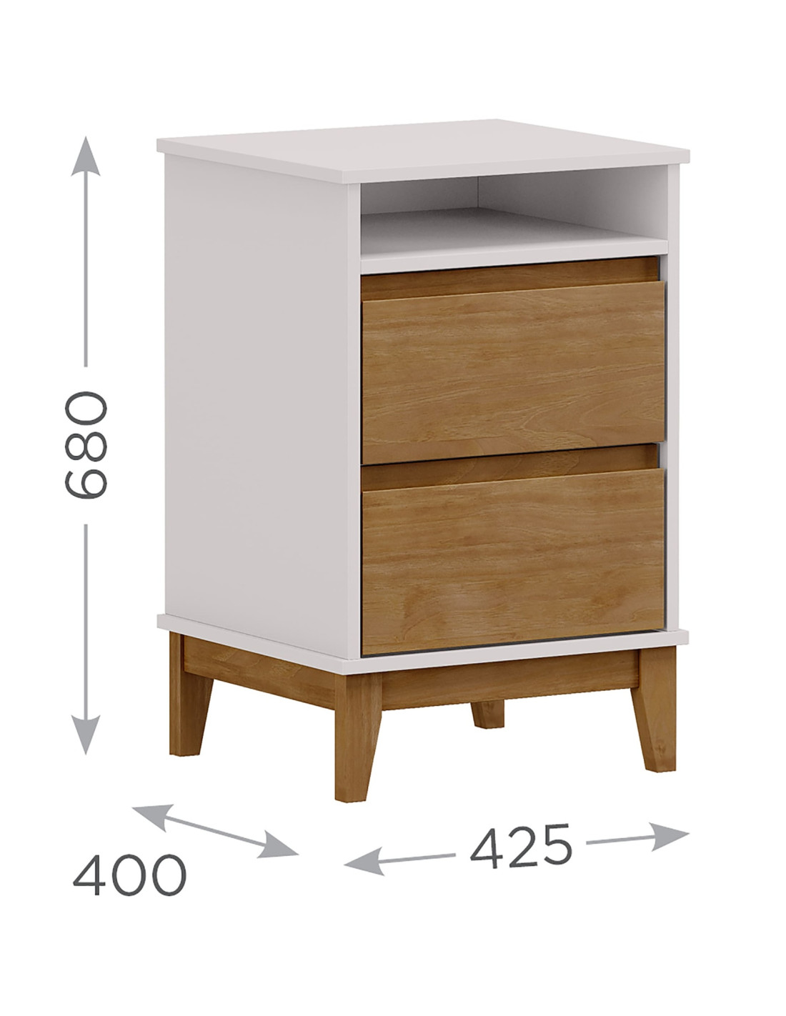 El velador Prata de madera, con sus dos cajones cuidadosamente diseñados, aporta un toque de calidez y funcionalidad a cualquier dormitorio. Fabricado en madera de pino, este velador combina una estética natural con una resistencia excepcional, ideal para guardar tus objetos esenciales con estilo. Su diseño compacto y elegante es perfecto para crear un espacio armonioso y organizado, convirtiendo cada noche en una experiencia de confort y serenidad.