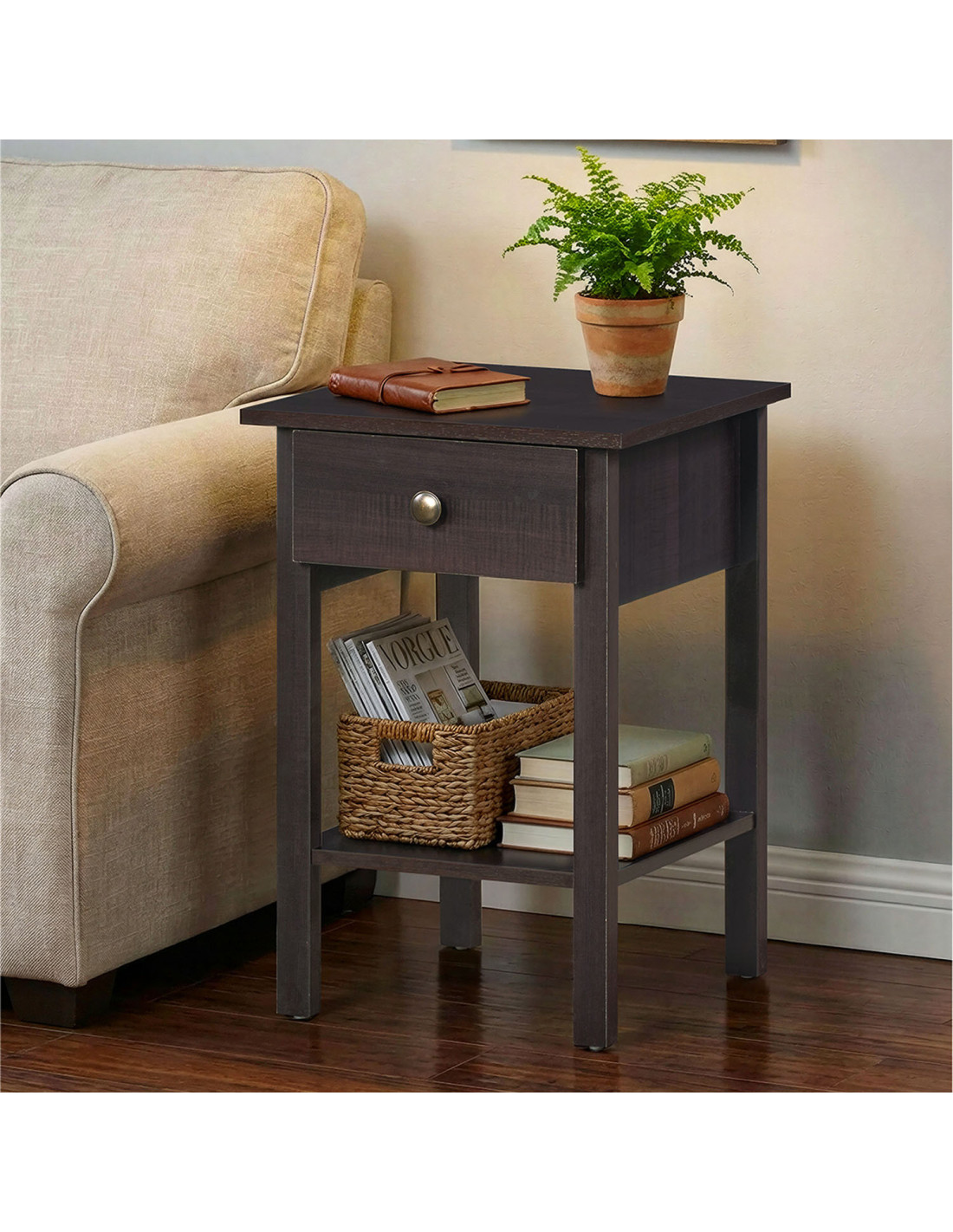 Velador 1 cajón en MDP melamina, estilo moderno ideal para organizar lo esencial junto a la cama.