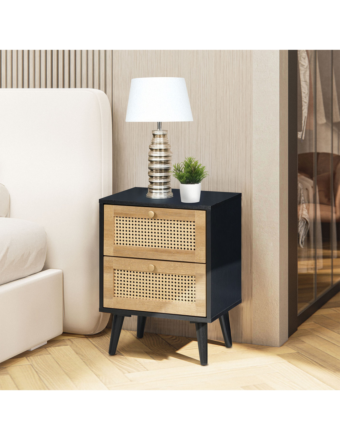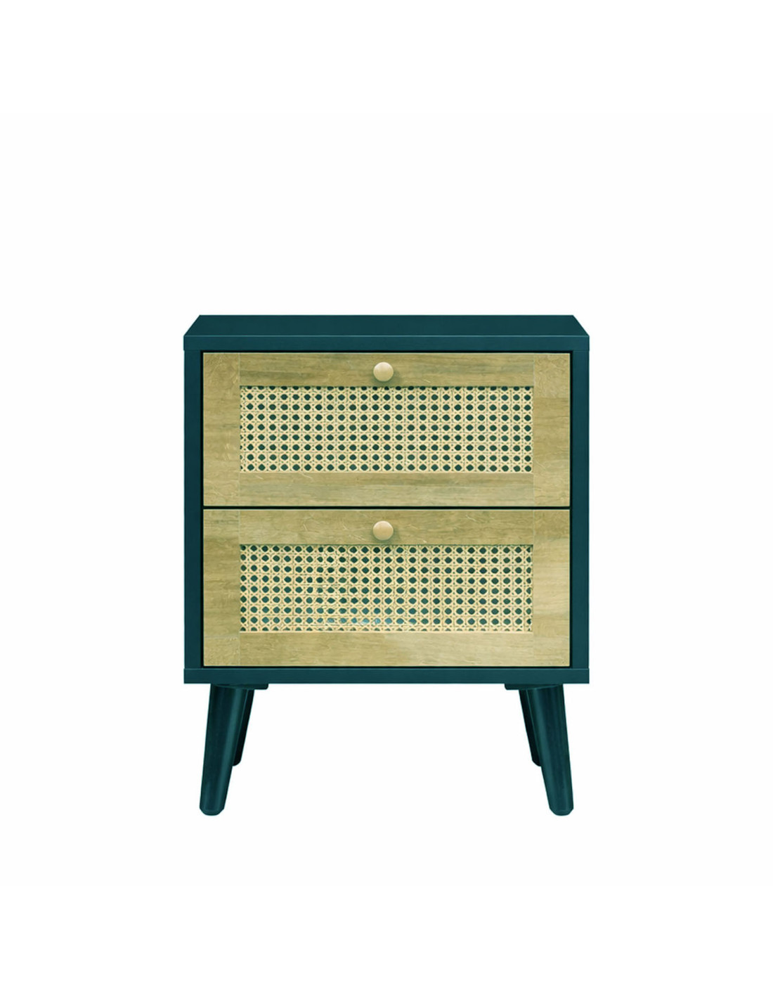 Velador 2 cajones en MDP melamina, ideal para almacenamiento práctico y orden en dormitorio.